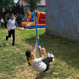Drugą częścią spotkania był wielki festyn ze wspaniałymi atrakcjami jak konkurs przeciągania liny, tańce, zjeżdżalnia tyrolka, malowanie twarzy, warkoczyki, fotobudka, malowanie na folii oraz obfite porcje pysznego jedzenia.