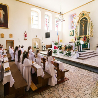 W sobotę, 18 maja odbyła się w naszej parafii piękna i podniosła uroczystość Pierwszej Komunii Świętej. Po raz pierwszy Pana Jezusa do swojego serca przyjęło 32 dzieci. Uroczystość przebiegła w dwóch grupach - o godz. 10.00 klasa III a, natomiast o godz. 12.00 - kl. III b. Przewodniczył ks. Proboszcz, a ks. Dominik - który przygotowywał dzieci na to wydarzenie - wygłosił do nich i zebranych gości kazanie, a także czuwał nad przebiegiem całej liturgii. Podczas Eucharystii grał i śpiewał zespół muzyczny ze Stargardu.