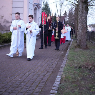 Fotorelacja 📸 rezurekcji ⚪ - porannej Mszy Świętej z procesją eucharystyczną, będącą triumfalnym przejściem Chrystusa zmartwychwstałego pośród zgromadzonego ludu 🌿 .