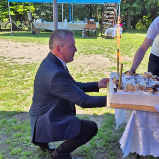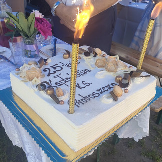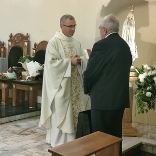 Po zakończonej Eucharystii była sposobność, aby parafianie złożyli Jubilatowi swoje życzenia. Natomiast po wszystkim zaproszeni goście przeszli na teren za plebanią, gdzie zostali poczęstowani "smakołykami" z grilla, ale także przepysznym jubileuszowym tortem i ciastami. Wśród zaproszonych gości było 15 osób z rodziny Jubilata.